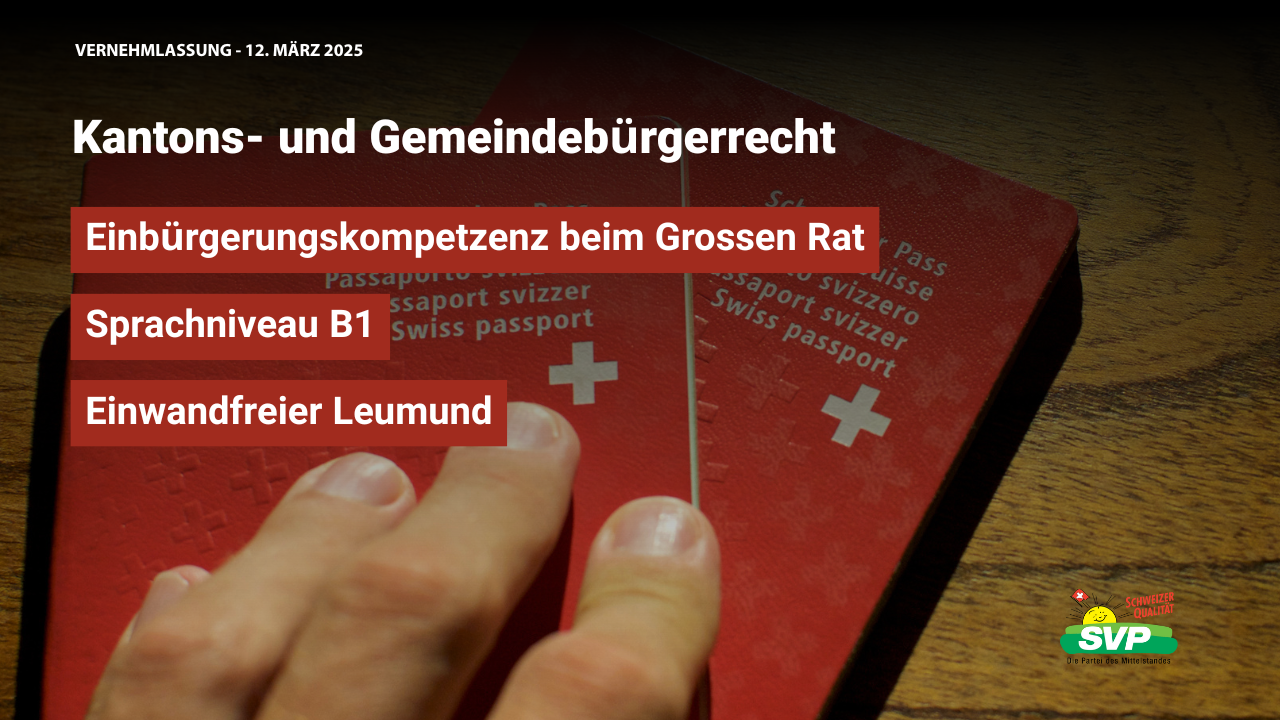 Vernehmlassung KBüG Kantons- und Gemeindebürgerrecht